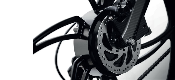 Cuadro de fibra de carbono «pre-preg» de solo 2.2KG en una única pieza, fabricado con la misma tecnología que usa la NASA y la Fórmula 1 (Bladder-moulding), desarrollado por el equipo de diseño e ingeniería de EMOV en Argentina. De última tecnología, ultra liviano y extra resistente. Esta característica hace que la Brina2 se convierta en la bicicleta eléctrica de alta potencia más liviana del mercado en su categoría.