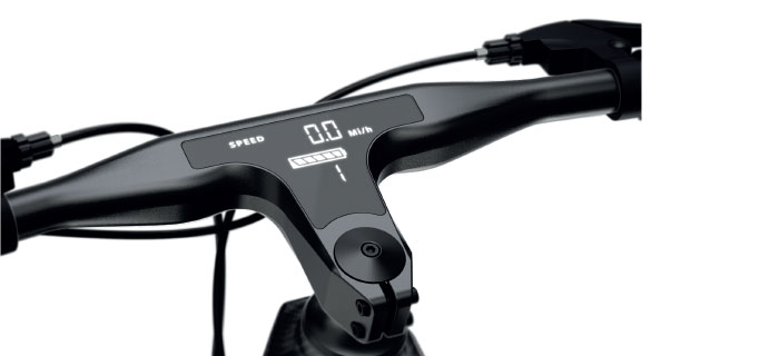 Manubrio con display integrado, fabricado en una sola pieza de aleación de aluminio. Informa los datos más importantes de tus viajes, es waterproof y tiene puerto USB para cargar tu celular.. Permite cambiar entre 5 modos de asistencia, indica velocidad, odómetro total y parcial entre muchísimas otras opciones.